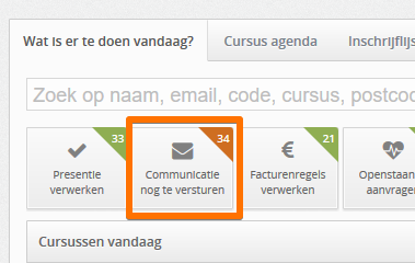Indien je alles ineens wil versturen klik je op het vinkje naast ‘cursus/taak’. Alles wordt nu aangevinkt. Klik hierna op ‘Versturen’ (rechtsboven) en alles zal worden gemaild.
