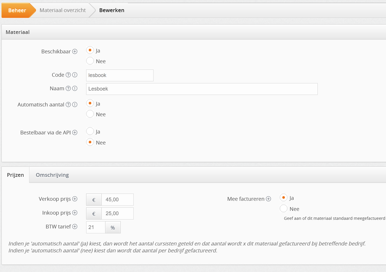 Het is hierin belangrijk dat tenminste de verplichte velden worden gevuld. Dit zijn: