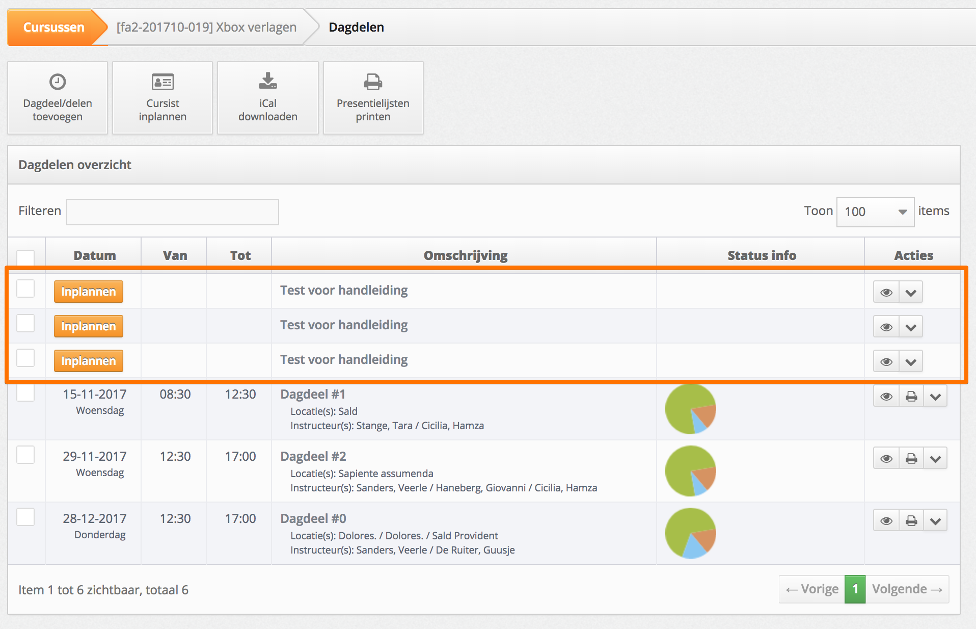 Om ze makkelijk in te plannen kan je nu de dagdelen selecteren door de vinkjes ervoor aan te klikken en op daarna op de knop 'bulk acties' te drukken.