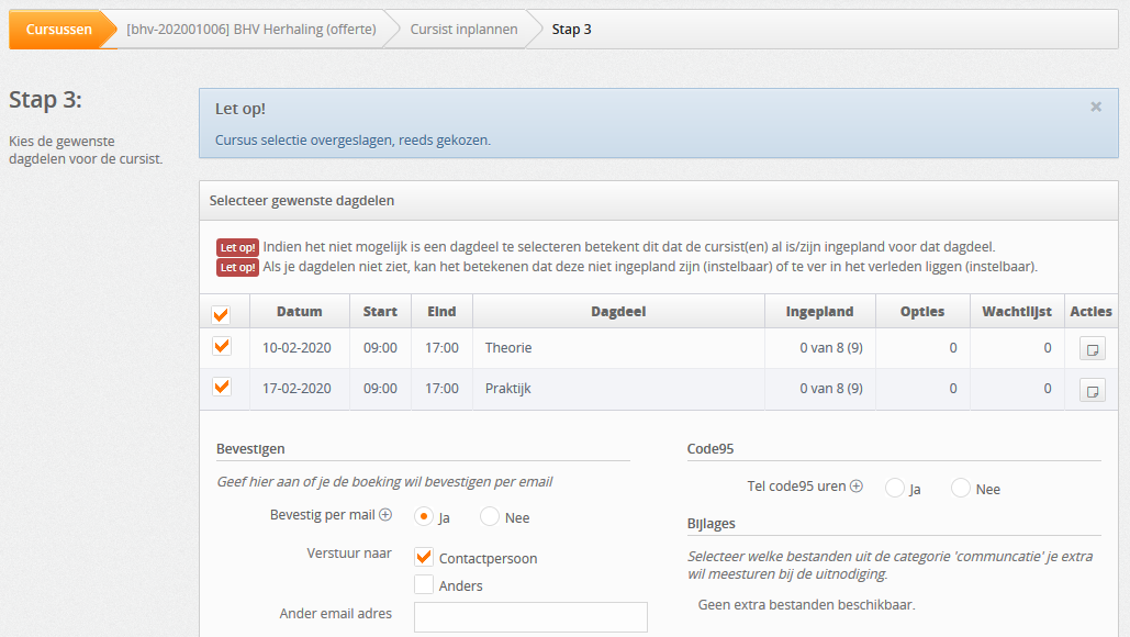 Minimaal nodig voor cursist inplannen