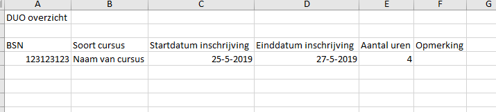 Let op: Alle cursisten waar DUO aanstaat komen in de rapportage, dus ook als ze niet zijn geinpland op een cursus.
