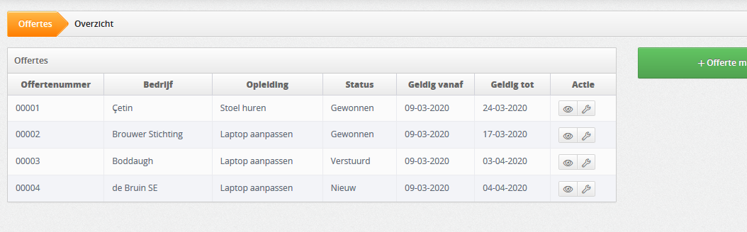 De offerte kun je eenvoudig bekijken door deze te kiezen middels het oogje in het overzicht van offertes.