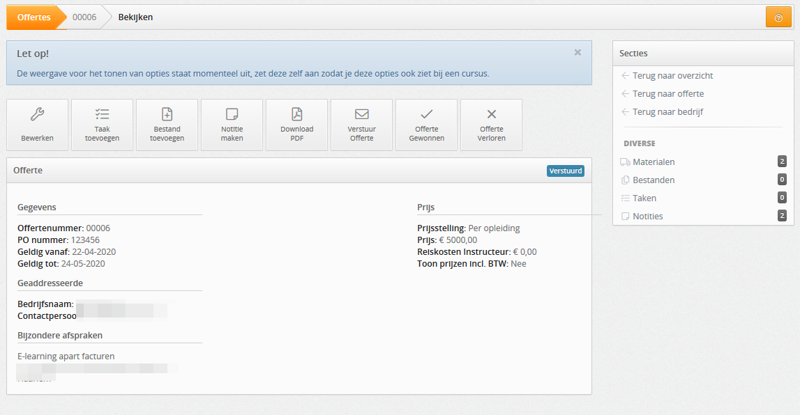 Een bestaande of een net nieuwe toegevoegd offerte kun je wijzigen en nog aanpassen.