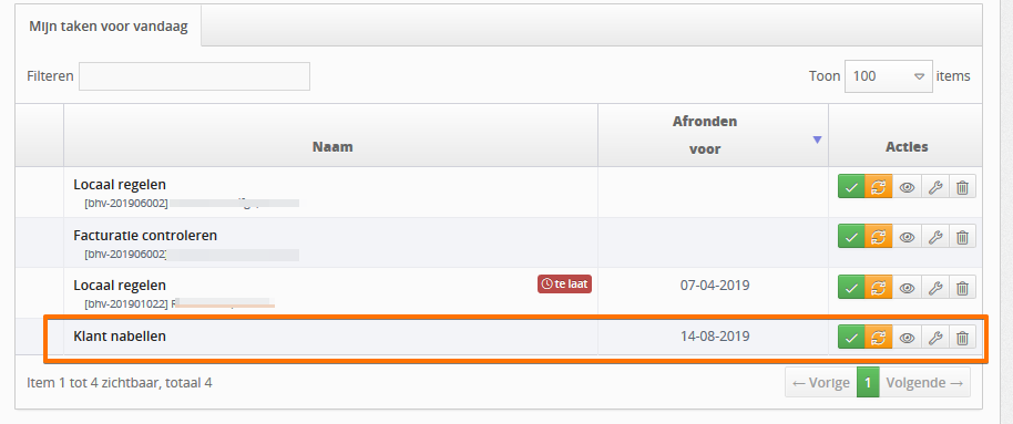 Als de datum in de buurt van vandaag is, dan zie je deze taak ook op het dashboard bij 'Mijn taken voor vandaag'.