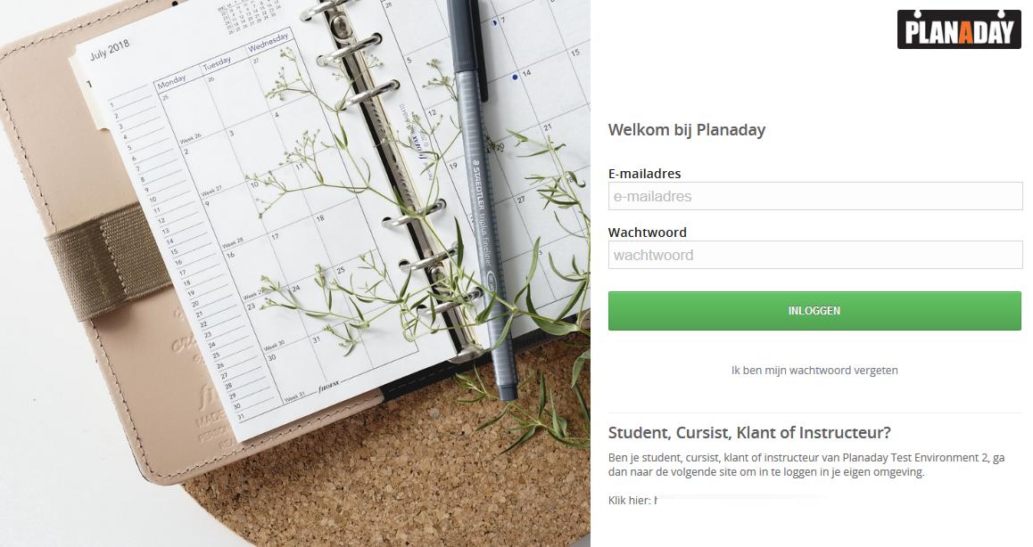 Het loginscherm van Planaday en de Portalen (zoals instructeurportaal, cursistenportaal of klantenportaal) zijn te wijzigen qua achtergrond en logo.