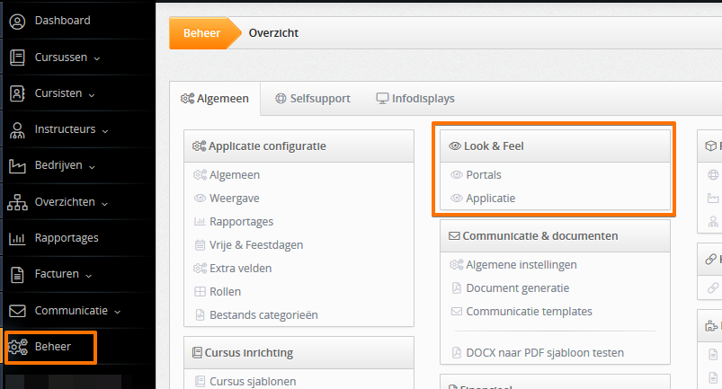 - Kies voor 'Beheer -> Look & Feel -> 'Applicatie' (zie afbeelding 1)
