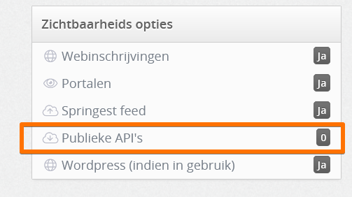 Let op: indien een cursus bij 'Publieke API' op 'ja' staat, dan is deze altijd op te halen via de API.