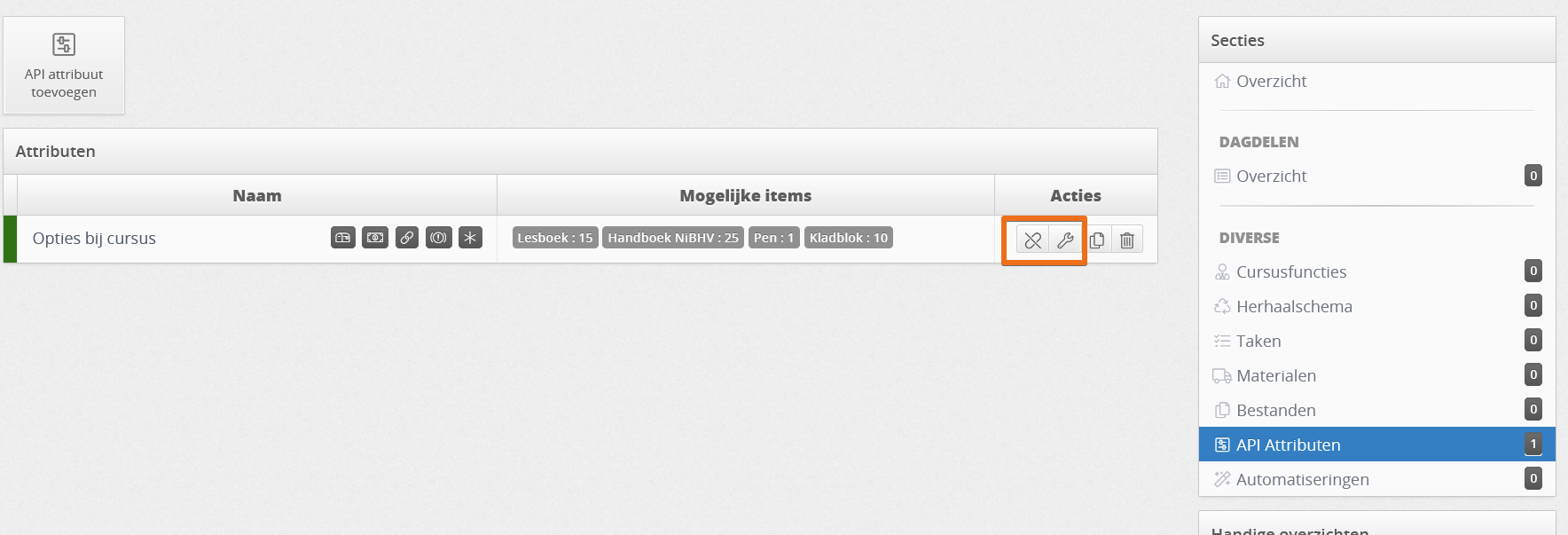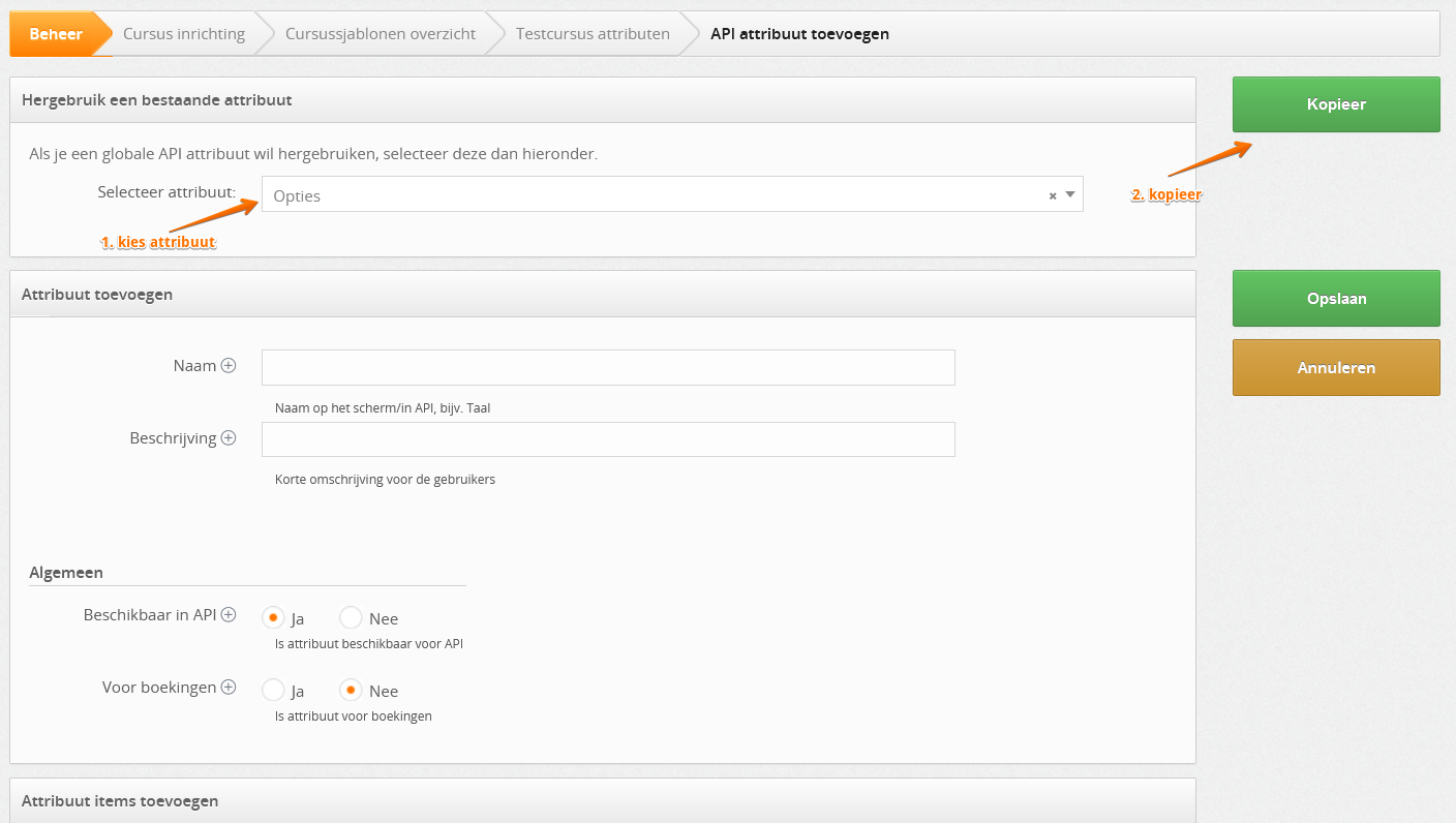 Stap 3 werkwijze API-attribuut overnemen in een cursus(sjabloon) of dagdeel.